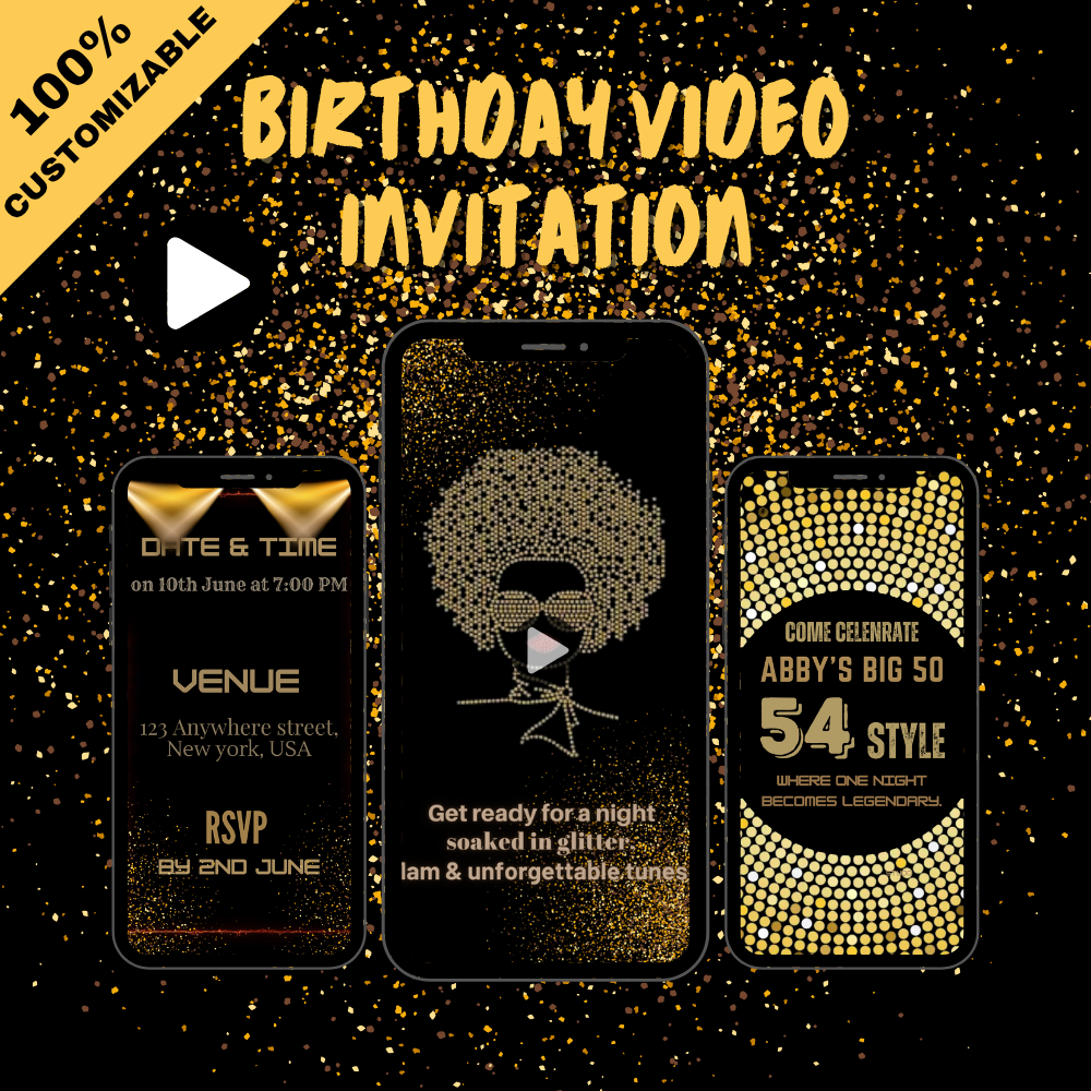 Bring the glitter, the groove, and all the glam with this Disco Party Video Invitation the ultimate way to kick off a fabulous birthday celebration with retro vibes and modern flair.