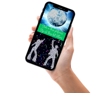 From shimmering silver lights to the infectious beats of the boogie era, this 70's Silver Disco Video Invitation gets everyone in the mood to dance the night away.