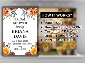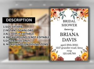 Embrace the beauty of the season with our Autumn Flowers Invitation, a digital card designed to capture the warmth and charm of fall. Featuring rich earthy tones, golden leaves, and elegant floral accents, it’s the perfect choice for autumn-themed weddings, birthdays, harvest dinners, or cozy gatherings with loved ones. This digital invitation sets the tone for heartfelt celebrations filled with seasonal spirit.