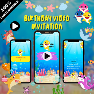 Turn up the fun and dive into the cutest celebration under the sea with our Animated Baby Shark Birthday Video Invitation! Packed with bright colors, bouncy animations, and the catchy Baby Shark theme — this digital invite is the perfect way to get kids (and parents!) excited for the big day.