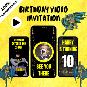 With bold visuals, epic music, and Gotham's iconic skyline, this Batman Birthday Video Invitation kicks off your child’s celebration with superhero style and unforgettable flair.