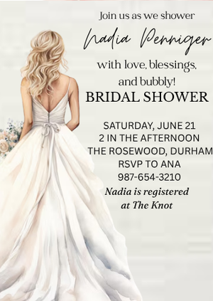 Celebrate the bride-to-be with elegance and warmth using our “Blessings to the Bride” digital invitation. This beautifully crafted card sets the tone for a heartfelt and graceful bridal shower, bringing family and friends together in a modern, meaningful way.
