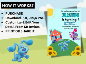 Bring the magic of Blue’s Clues to life with our digital birthday invitation – where fun, friends, and adventure come together!