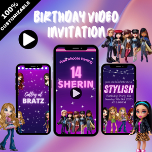 Let your fashion diva shine with our Bratz Birthday Theme Video Invitation – Bratz Girl Party Digital Invite for Stylish Kids the ultimate glam digital invite inspired by the bold, stylish world of Bratz dolls. With fierce animations, glittery graphics, and total Y2K vibes, this invite sets the scene for a birthday celebration full of fashion, friends, and fabulous fun.