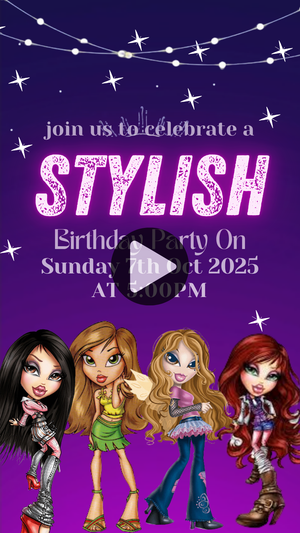 This Bratz Birthday Video Invitation is more than just an invite — it’s a runway-worthy entrance to the fiercest party of the year.