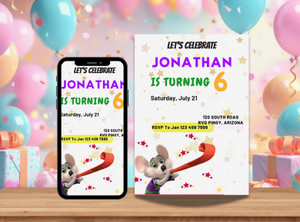 Step into the playful world of Chuck E. Cheese, where every moment is packed with games, giggles, and birthday cheer! Our personalized digital invitation sets the perfect tone for an exciting party your child will never forget.