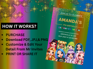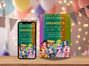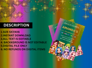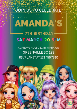 Step into the world of glam, glitter, and color with our Colorful Rainbow High Digital Birthday Invitation!