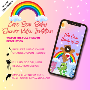 From clouds and rainbows to cuddles and kindness, this Care Bears Baby Shower Video Invitation brings warmth, nostalgia, and joy to your special day.