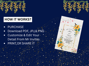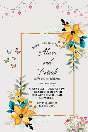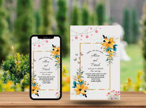 Make your wedding unforgettable with our Floral Border Digital Wedding Invitation Card – a perfect blend of nature inspired beauty and modern convenience. Designed with delicate sunflowers, butterflies, and watercolour leaves, this personalized digital invite sets the tone for a romantic and joyful celebration.
