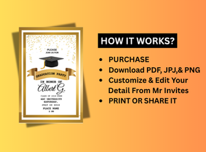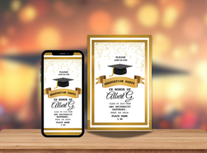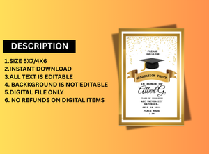 Announce your achievement in golden style with our Golden Graduation Celebration Card Invitation. This stylish and creative digital card is designed to make your graduation party unforgettable. With elegant gold accents and a modern layout, it's perfect for high school, college, or university graduates looking to share their success with a touch of class.