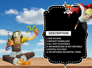 Get ready to raise the anchor and celebrate in true pirate style with a personalized One Piece Birthday Adventure! Whether your little one dreams of becoming the next Pirate King or just loves the thrill of the Grand Line, this invitation brings the magic of One Piece right to your celebration.