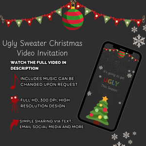 Get ready to jingle and mingle with a Christmas Ugly Sweater Party Video Invitation that’s packed with holiday cheer and playful fun! Perfect for your festive gathering, this animated digital invite brings the cozy, quirky vibe of ugly sweaters to life making your party the must-attend event of the season.