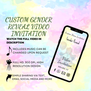 Make your big reveal unforgettable with our Custom Animated Gender Reveal Video Invitation! Whether you’re popping balloons, tossing confetti, or lighting up the sky, this personalized digital invite brings all the excitement and joy of your reveal to life before the party even starts!