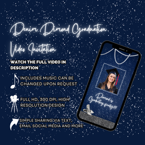 Celebrate your hard-earned success with sparkle, style, and a little edge! Our Denim & Diamonds Graduation Video Invitation combines chic glitz with cool confidence the perfect digital invite for a graduation party that’s as bold and brilliant as you are.