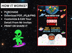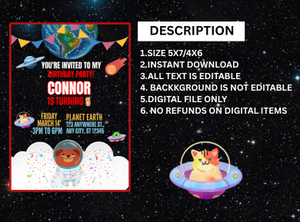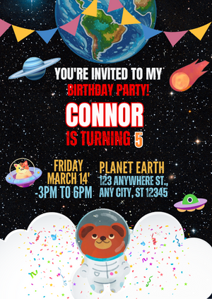 Get ready to launch into fun with our Outer Space Digital Birthday Invitation — the perfect way to invite guests on a galactic adventure your little astronaut will never forget!
