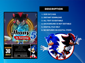 Get ready to race into an epic celebration with our Personalized Sonic the Hedgehog Digital Birthday Invitation! Perfect for young speedsters and Sonic fans, this invite brings excitement, color, and fast-paced fun to your party planning.