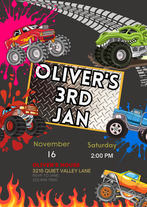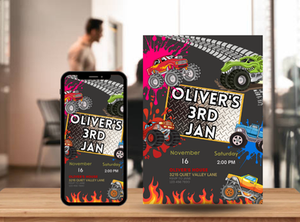 Start Your Engines for an Epic Birthday Bash with Our Monster Truck Jam Digital Invitation! 🚛💥🎉