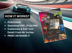 Calling all little thrill-seekers and monster truck fans! Get ready to roll out the ultimate party excitement with our Exciting Monster Trucks Jam Digital Birthday Invitation. With roaring engines, muddy wheels, and adrenaline-packed design, this invitation brings the energy of a real monster truck rally straight to your child’s celebration!