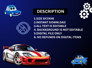 Packed with larger-than-life trucks, tire tracks, dirt splashes, and stadium vibes, this invitation captures the wild spirit of a monster truck show. Perfect for boys or girls who love powerful engines and off-road action!