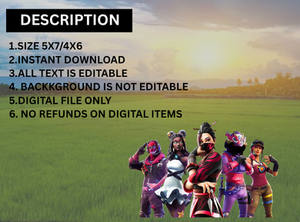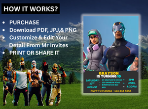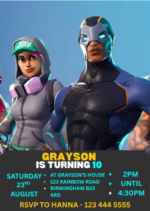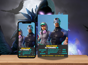 Fortnite Kids Birthday Theme Party Digital Invitation - Customizable Design Card Invites
