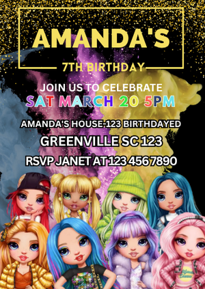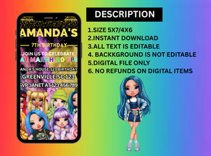 Step into a world of color, confidence, and creativity with our Rainbow High Digital Birthday Invitation!