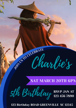 Make your childās special day legendary order your Digital Raya and the Last Dragon Birthday Invitation today and let the magic begin!