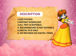 • 👑 Royal Elegance Meets Playful Fun – Inspired by the iconic Princess Peach, this invite blends magic and charm for an unforgettable celebration.
