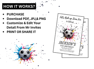 This Soccer Theme Digital Birthday Invitation is the perfect way to start the party with energy, excitement, and sporty flair! Designed with bold graphics, soccer balls, fields, and goal-post vibes, this invitation sets the stage for a game-winning birthday bash.