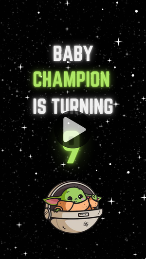 From floating pods to twinkling stars and adorable smiles, this Baby Yoda Birthday Video Invitation is the ultimate way to invite guests to a celebration full of joy, cuteness, and intergalactic fun.