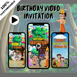 Whether your little one is turning 3, 5, or 9 — if they love Chota Bheem, this custom video invitation will get every guest excited for a celebration full of courage, laughter, and laddoos!