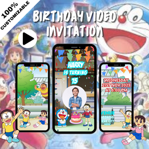 Make your child’s special day unforgettable with a video invite that brings the magic of Doraemon straight to your guests!