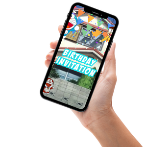 At MrInvite.com, we create custom-made video invitations that bring your party theme to life. With Doraemon, Nobita, and all their adventures featured in a playful design, your child’s celebration will start off with smiles and excitement!