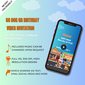 Get ready to zoom, bark, and celebrate with our Go Dog Go-Themed Animated Birthday Invitation — the perfect pick for little ones who love playful pups, colourful scenes, and non-stop fun! Whether you're planning a toddler’s birthday, a puppy-themed bash, or a Go Dog Go watch party, this digital invite sets the tone for tail-wagging excitement.