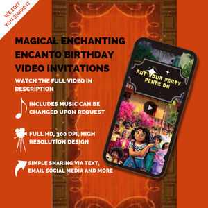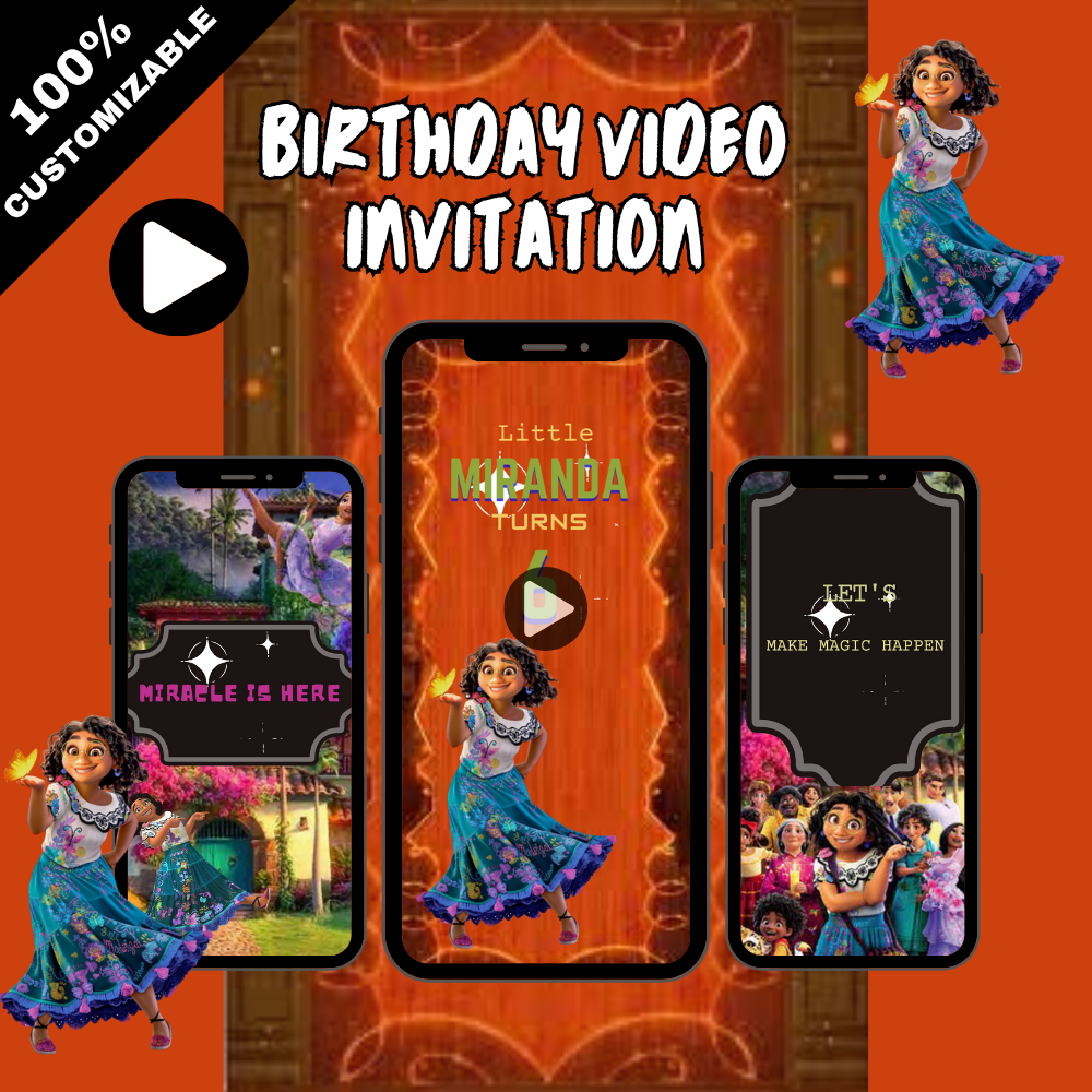 Step into a world of wonder and color with a birthday invitation inspired by the magic of Encanto! Our Magical Encanto Birthday Video Invitation is fully customizable — perfect for turning your child’s special day into an unforgettable celebration filled with charm, music, and enchantment.