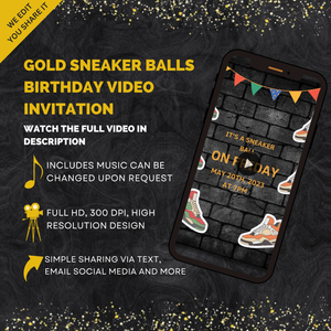 From the moment your guests hit “play,” this Multi-Color Sneaker Ball Video Invitation sets the tone for a party that’s bold, fresh, and full of unforgettable moments.