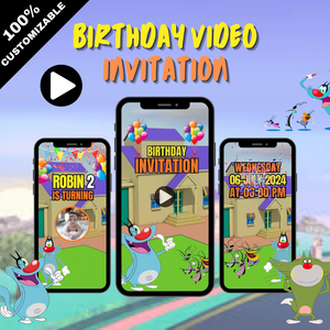 Get ready for a hilarious, cartoon-packed celebration with our Oggy and the Cockroaches Birthday Animated Video Invitation — designed for kids who love wild fun, silly chaos, and non-stop entertainment!