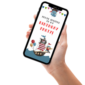 Packed with fun animations, nautical vibes, and personalized pirate details, this digital invite is the perfect way to invite guests to your little captain’s treasure-filled party.