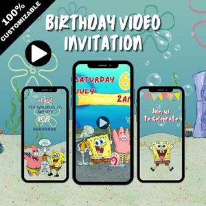 Your child’s favorite yellow sponge is ready to kick off the ultimate underwater celebration! With our Animated SpongeBob Birthday Video Invitation, you’ll dive into a colorful world of jellyfish, bubbles, and Bikini Bottom fun — all customized for your child’s big day.