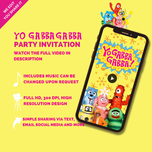 Throw a fun-filled, vibrant birthday bash with our Yo Gabba Gabba Kids Birthday Digital Invitation! Bursting with bright colors, playful animations, and all the cheerful vibes of the beloved show, this video invite is perfect for making your little one’s special day unforgettable.