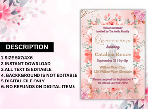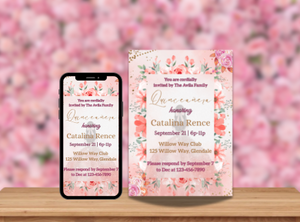 Start the celebration with style, elegance, and love. Order your personalized Gold Frame & Pink Wash Quinceañera digital invitation today and make her big day unforgettable! 🌷👑💫