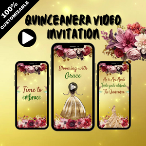 Whether you’re hosting a grand ballroom affair or a cozy celebration with a royal twist, this Gold & Burgundy Quinceañera Video Invitation will set the stage for a magical and meaningful Sweet 15.