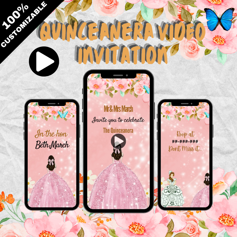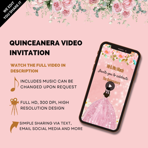 At mrinvite.com, we create stunning animated digital invitations that match your event's theme and personality. This pink-themed Quinceañera invite is a blend of elegance and modern charm — perfect for a young lady stepping into her next chapter.