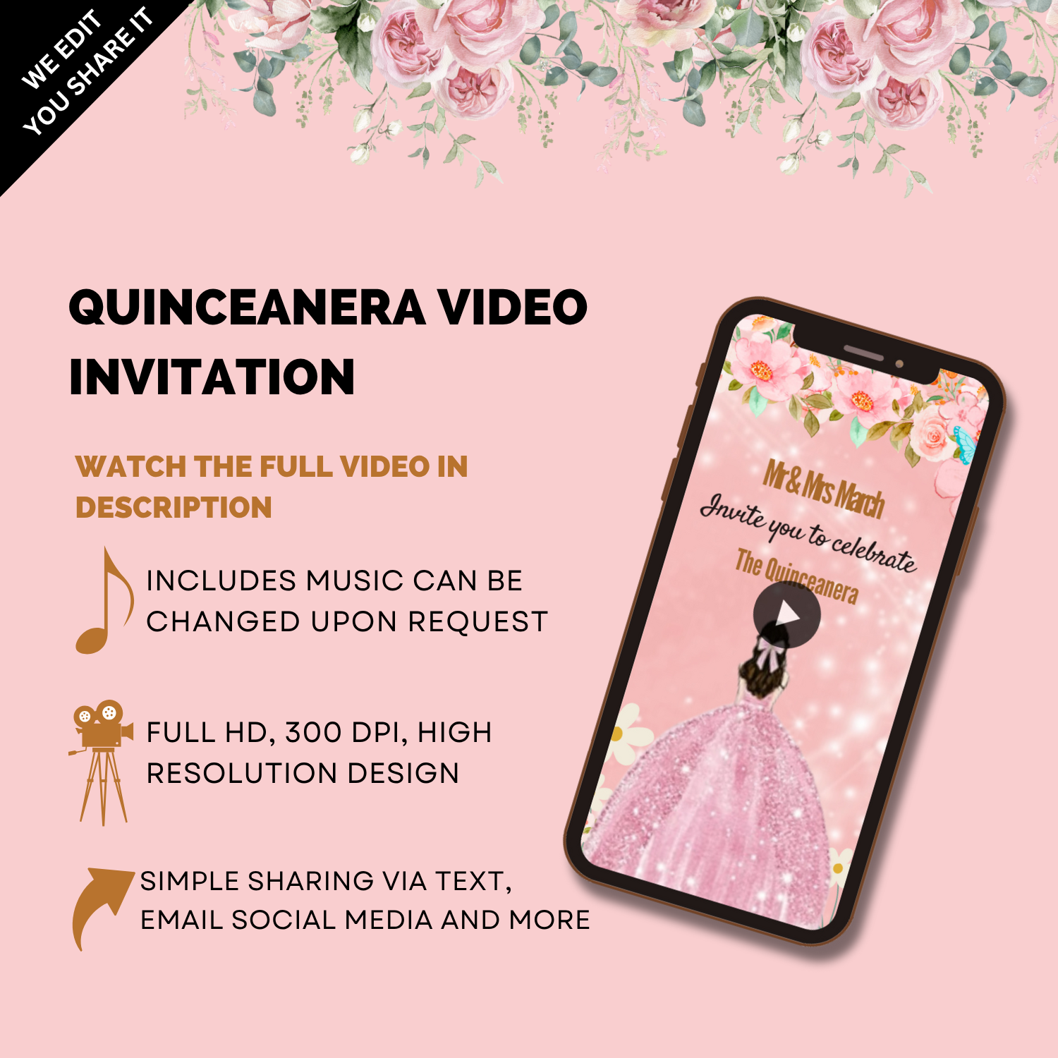 Make her entrance unforgettable with a pink-themed video invite that’s just as magical as her big day. 💕🎀👑🎉