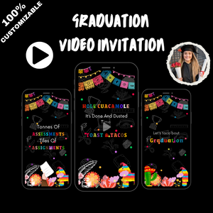 Celebrate your Class of 2024 graduate with our vibrant Mexican Graduation Video Invite, designed with festive fiesta flair! Packed with colorful animations, cultural charm, and party energy, this digital video invitation sets the perfect tone for a graduation celebration your guests won’t forget.