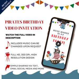 Pirates Theme Kids Birthday Digital Invitation – Animated Treasure Hunt Party Video Invite