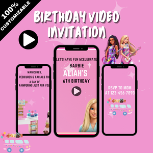 Sparkling Barbie Spa Birthday Video Invitation – Glam Barbie Themed Digital Party Digital Invite